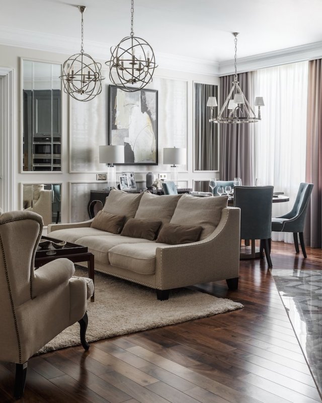 Гибкость и демократичность американского стиля делает его актуальным для самых разных слоев населения. Благодаря этому он может с одинаковым успехом существовать и в богатейших особняках, и в городских квартирах простых служащих. В направлении прослеживается синтез различных стилей – ар-деко, кантри, классики. Для правильной организации пространства в соответствии с принципами американского стиля необходимо просторное помещение. Такие условия позволяют наполнять жилище воздухом свободы и раскрепощенности – главной составляющей данного веяния.