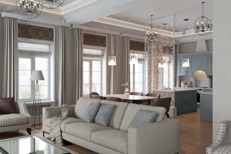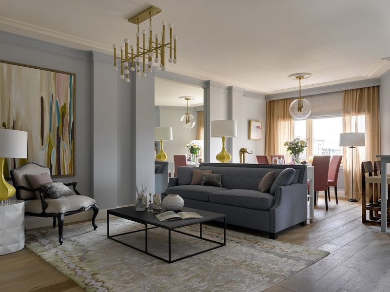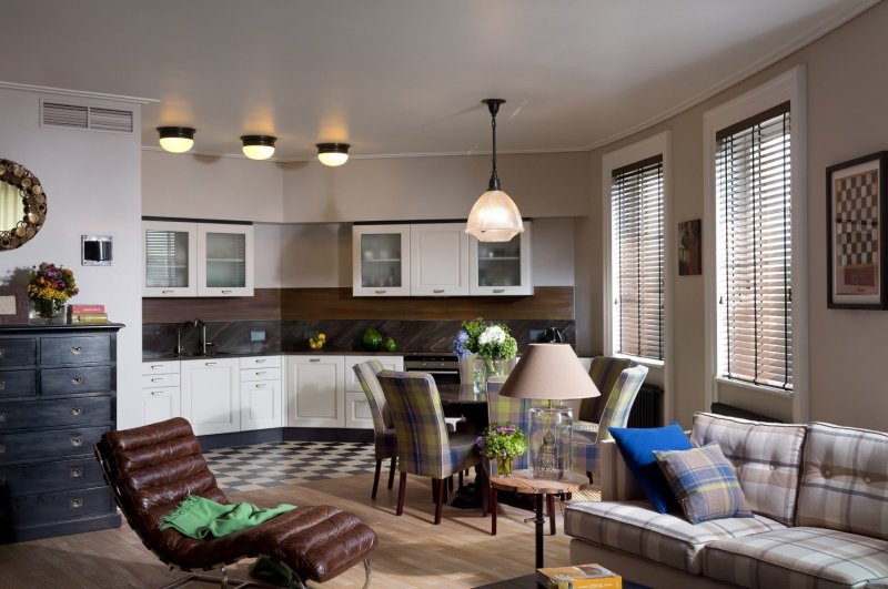 Каждая зона должна иметь собственное локальное освещение. Над обеденным столом можно разместить большую люстру.