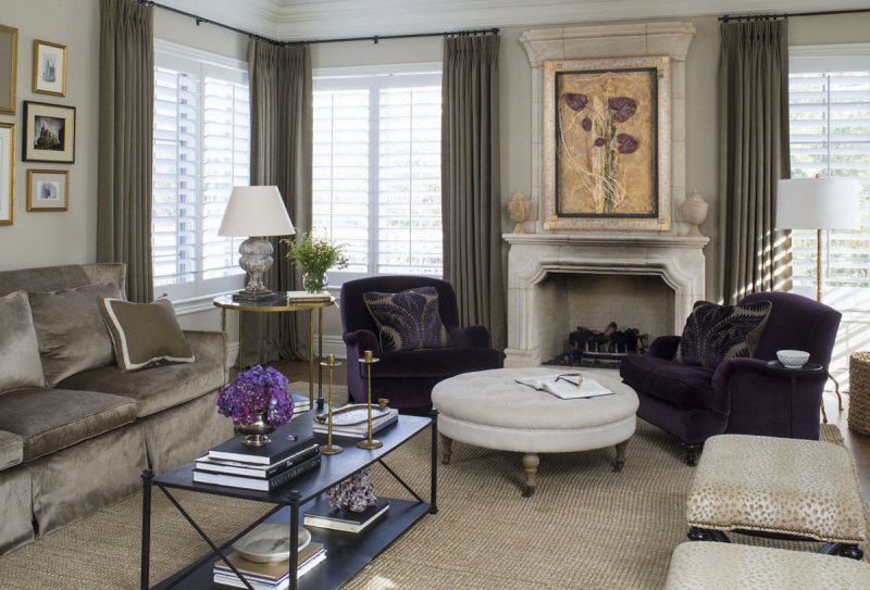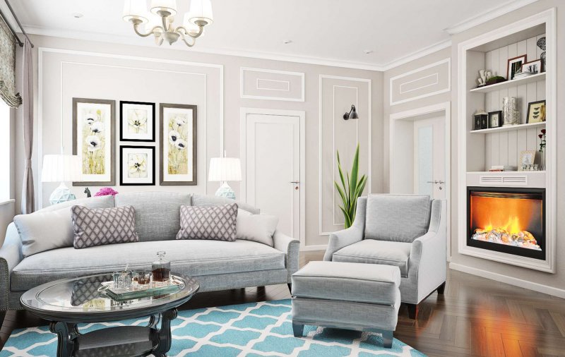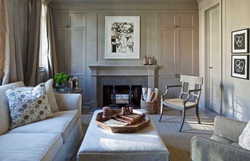Дизайнеры не рекомендуют перегружать интерьер массивными декоративными элементами. Здесь ценится комфорт и уют, поэтому гораздо больше подойдут комнатные растения, композиции из цветов, картины, панно и фотографии в красивых рамках, декоративные подушки в тон шторам и мягкие пледы. Создать уютную атмосферу поможет накладной декоративный камин.