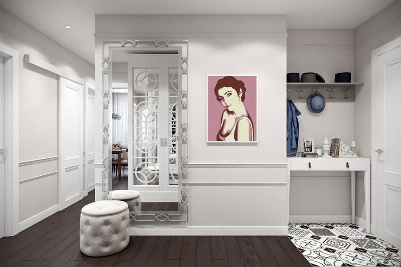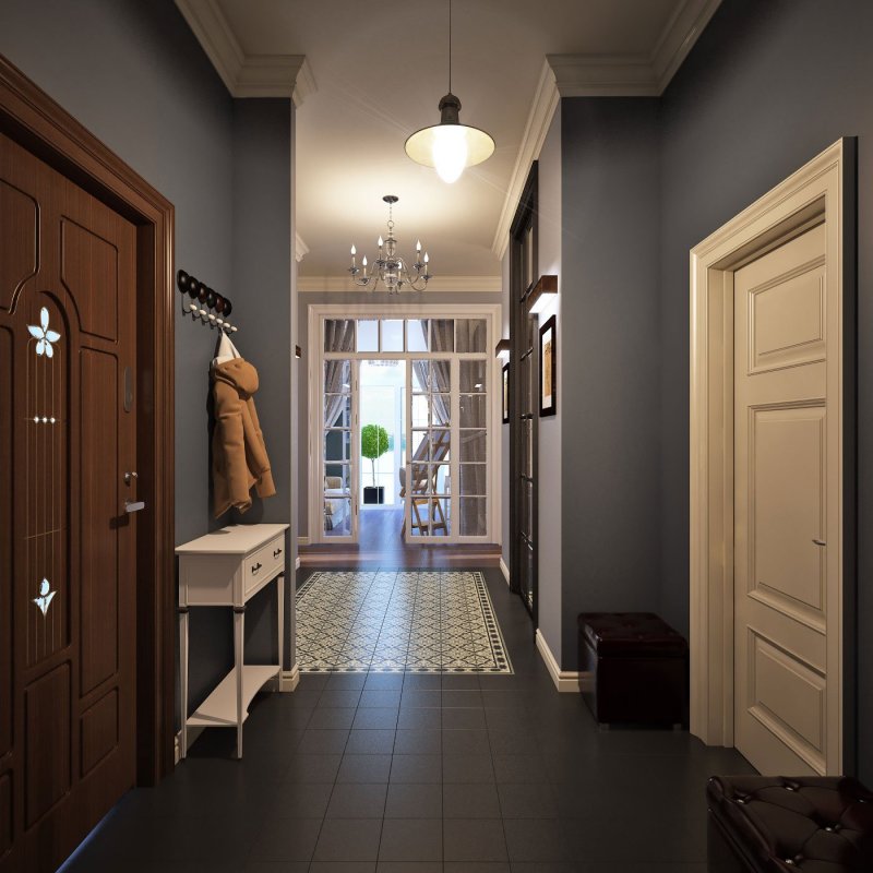 Большое свободное пространство, светлая палитра, практически полное отсутствие декора – отличное решение для прихожей. Особенности американского стиля позволяют получить просторное, незахламленное и незатемненное помещение, которое будет поднимать настроение жильцов при каждом возвращении домой.