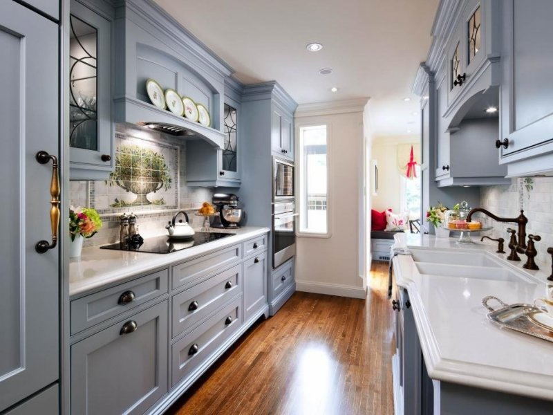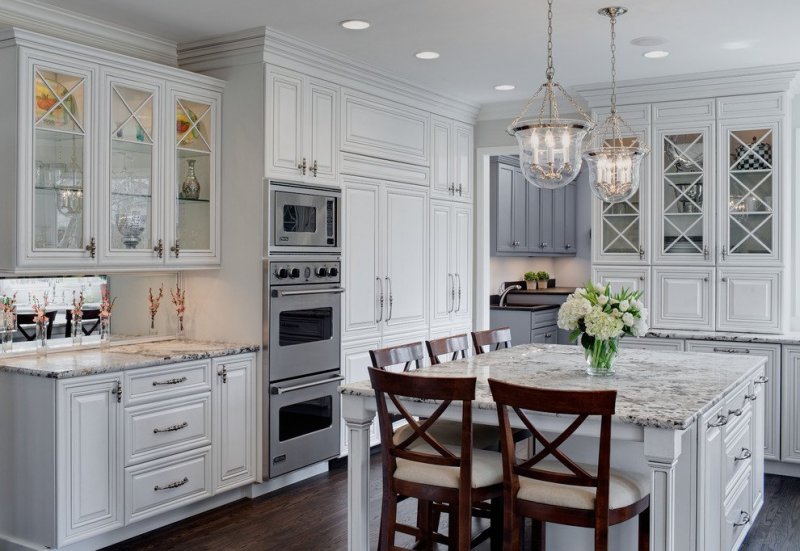 Американский стиль – отличный выбор для просторной кухни. В двухкомнатных квартирах пищеблок должен быть объединен с гостиной. Прием зонирования позволяет визуально отделить пространство готовки от обеденной зоны. Можно использовать легкие невысокие перегородки, стеллажи со сквозными полками, раздвижные панели. При желании можно просто развернуть диван спинкой к кухонной зоне. Другой вариант – отгородить его с помощью комода, на котором будут размещены комнатные растения.