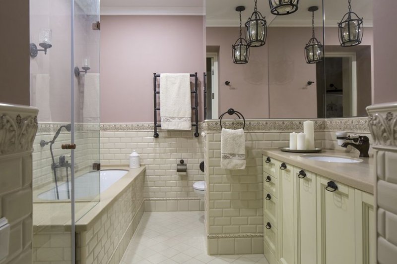 Санузлов чаще всего несколько. В идеале он должен быть отдельный для каждой спальни. В ванной нет никакой техники – бойлеров, стиральных и сушильных машин. Для них в доме есть отдельное помещение или их размещают в подвале.