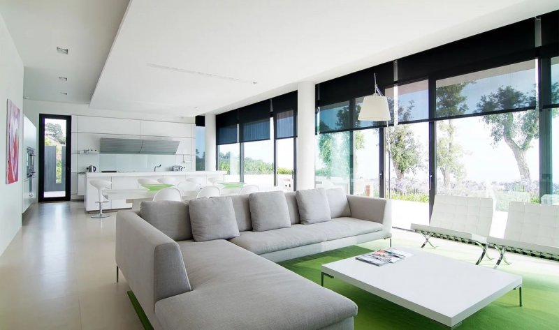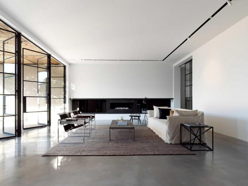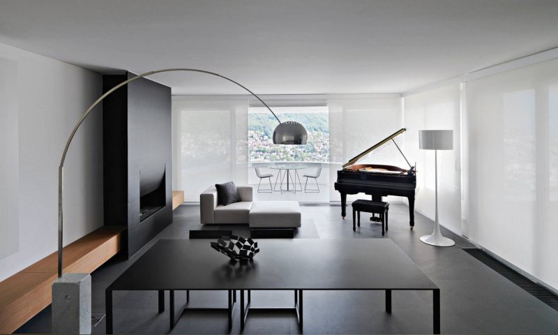 Лучшим освещением для минимализма является дневной свет. Приветствуются большие панорамные окна в пол. Если возможности добавить света таким образом нет, это компенсируется отсутствием ненужного текстиля. Плотные шторы заменяют на полупрозрачные занавески, жалюзи или ролеты.
