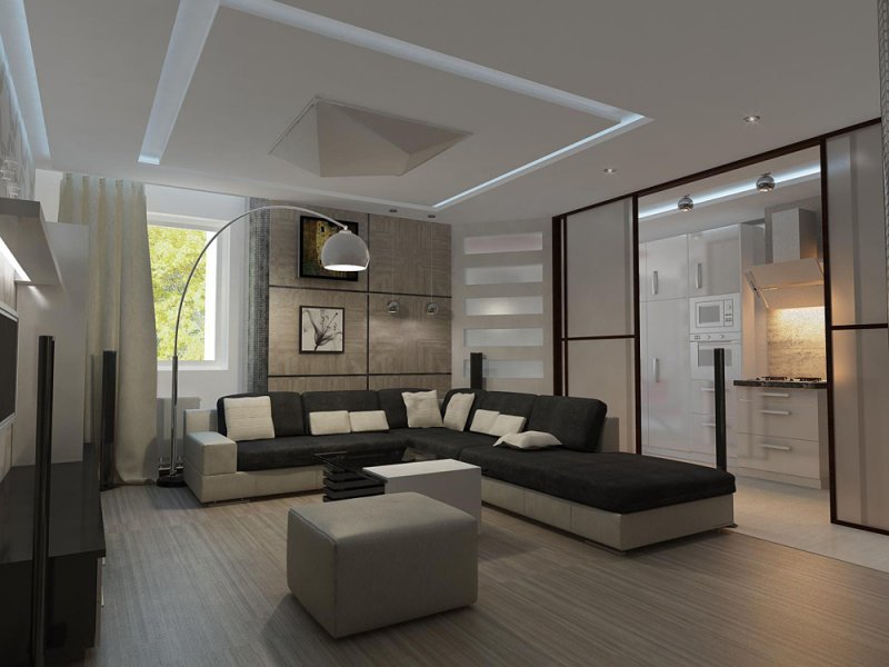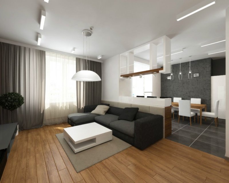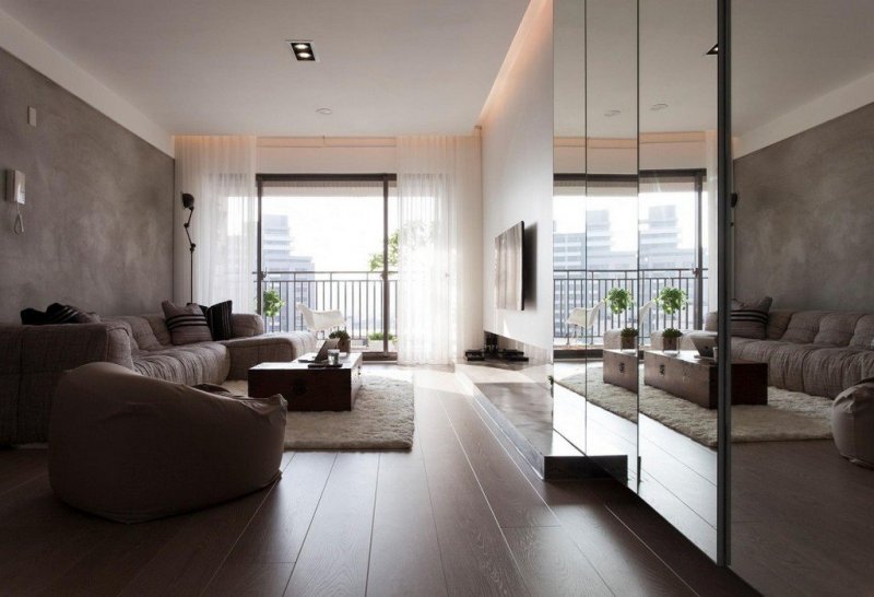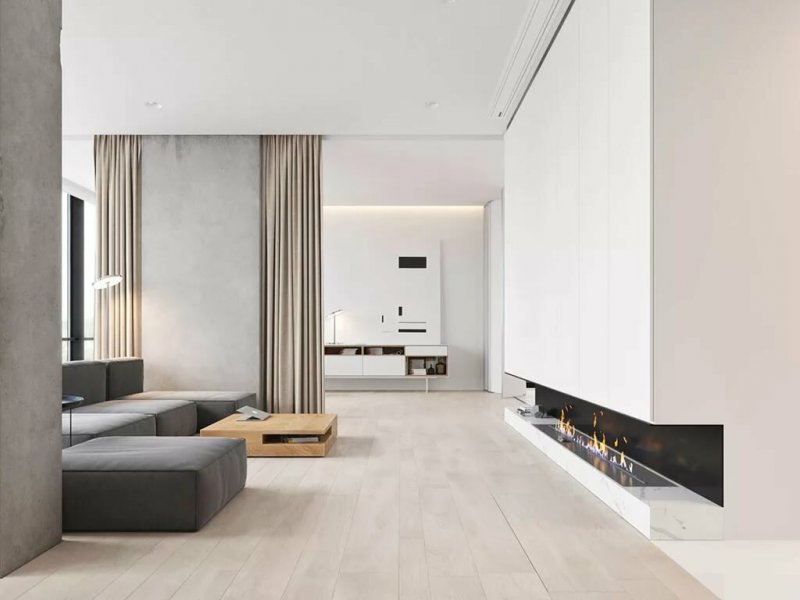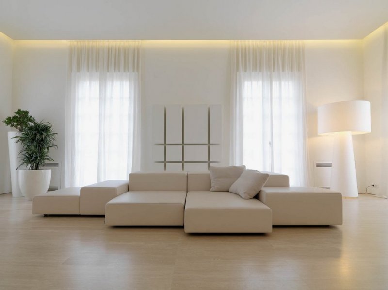 Перед тем как начинать оформление помещения в минималистическом стиле, пространство следует оптимизировать. В маленькой комнате улучшают площадь за счет особого расположения предметов и расположения осветительных приборов. Просторные гостиные в минималистическом стиле или лофт можно удачно зонировать. Для этого существует несколько способов: