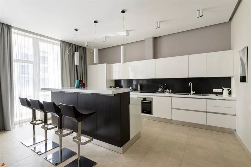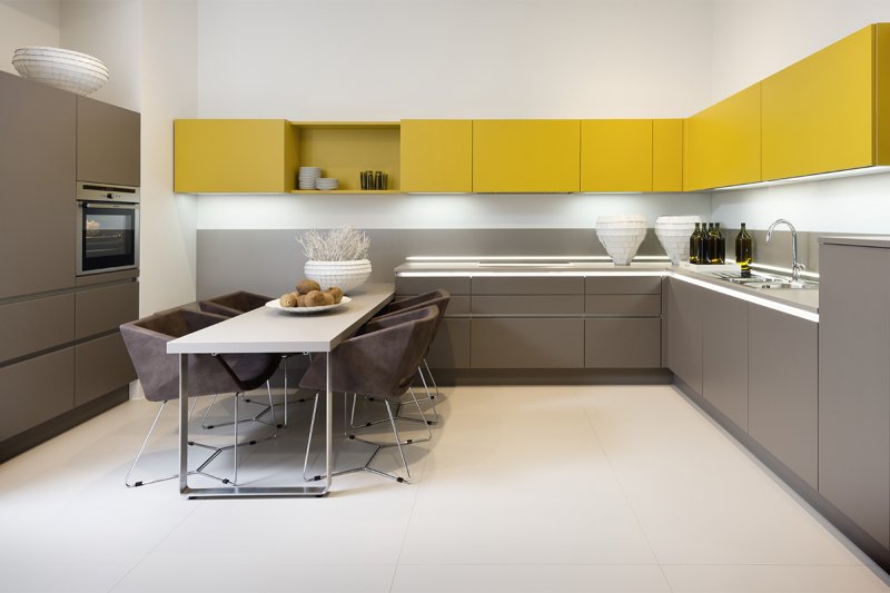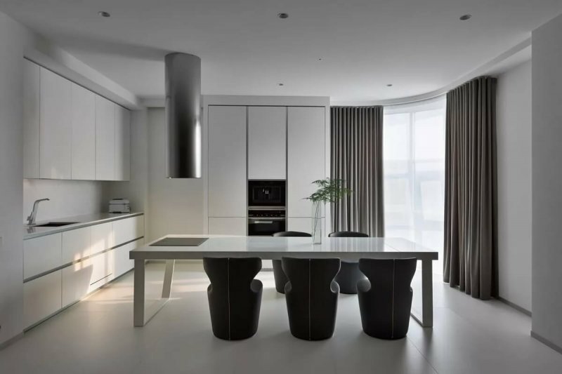 Мебель в такой кухне может быть только выполнена на заказ, в сдержанном, современном стиле. Такие проекты демонстрируют высокую функциональность, простоту и элегантность. В просторном помещении обязательно оставляют место в центре для острова. На такой кухне будет проходить не только приготовление пищи, но и наслаждение блюдами, проведение торжеств и отдых домочадцев. Сделать просторной даже небольшую кухню можно с помощью гладких поверхностей, прямых линий.