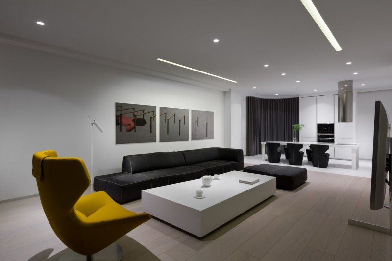 От остальных стилей минимализм отличают несколько общих признаков. В первую очередь создание такого интерьера возможно только в просторном помещении. Планировка трехкомнатной или двухкомнатной квартиры должна быть открытой. По возможности необходимо убрать несколько простенков и перегородок. Если убрать их полностью нельзя, то делают частичный снос, из узких дверей делают широкие арки.