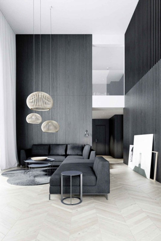 Основной признак простого стиля – отсутствие мелкого декора. Тут нет места памятным безделушкам, романтичным деталям. Все предметы в обстановке должны иметь правильную геометрическую форму. Корпусную и мягкую мебель выбирают одного тона. В основе интерьера могут быть только два цвета, чаще это белый, черный или серый. Яркие цвета могут быть только акцентными.