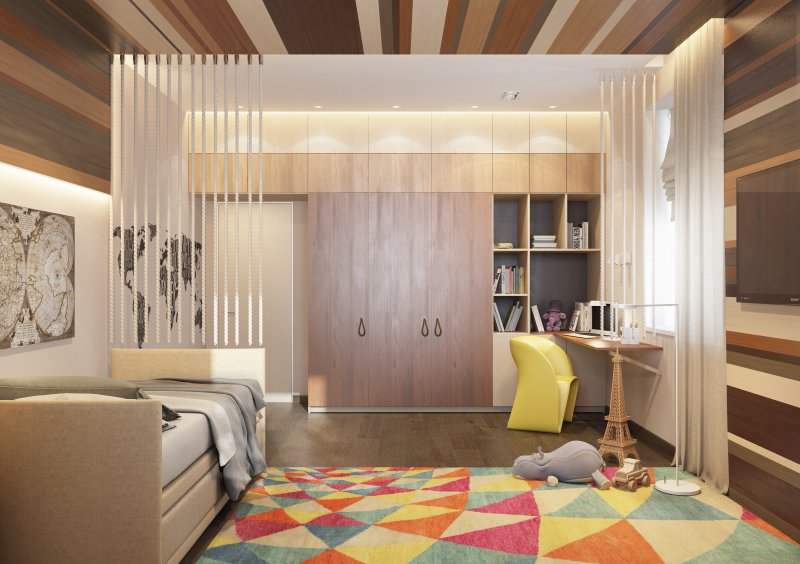 Для обустройства комнаты ребенка подойдет мебель трансформер. Модели представлены огромным ассортиментом с различным функционалом. Например, кровать может убираться в стенку, письменный стол – в шкаф. Таким образом будет скрыт от глаз творческий беспорядок, обстановка будет легкой и чистой.