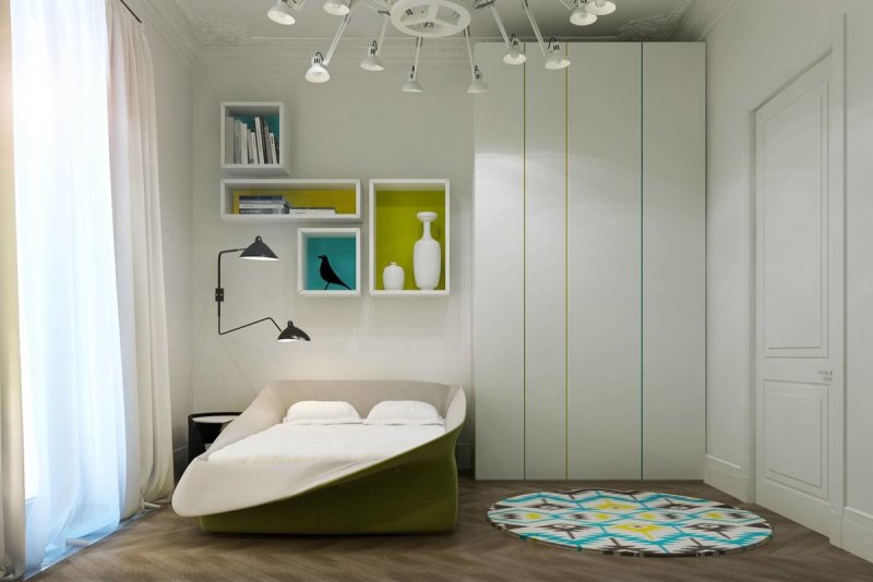 Если позволяет площадь, в спальне можно сделать отдельный гардероб. Это позволит определить все вещи в одно место и создать ощущение чистоты и свободы. Двери делают максимально незаметными, окрашивают в цвет стен, любой нейтральный. Декор для украшения проемов лучше не использовать, чтоб он не притягивал внимание и не отвлекал от общего дизайна.