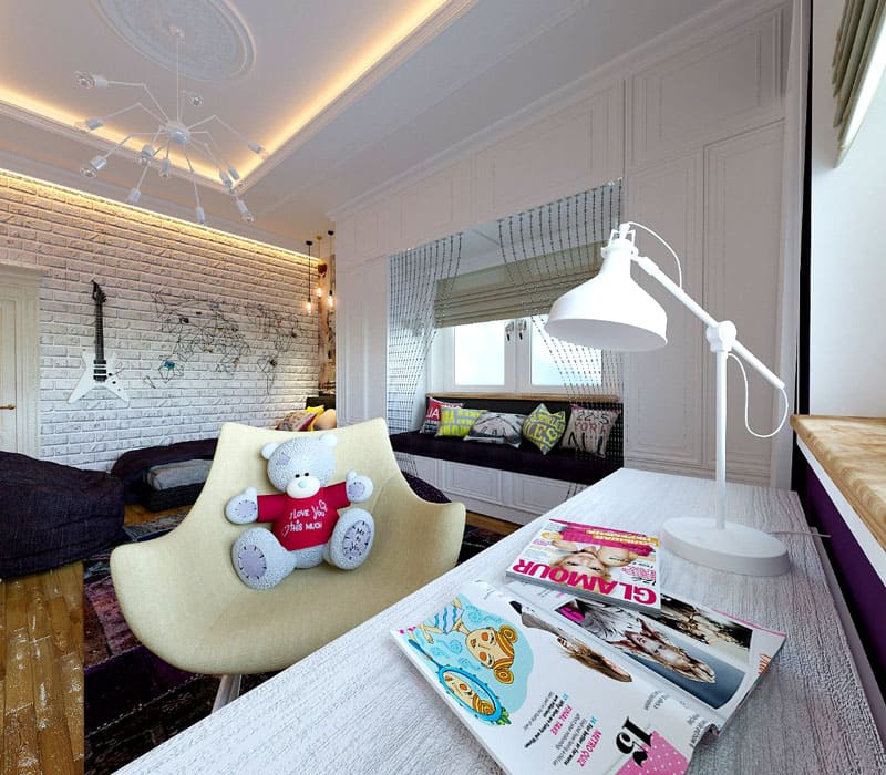 Главное условие при оформлении детской – использование натуральных, безопасных для здоровья материалов. Очень важно грамотно распределить зоны для сна, игры и учебы. По максимуму разгрузить пространство помогают вместительные системы для хранения игрушек. На светлых стенах приветствуются яркие рисунки, контрастные трафареты и глянцевые интерьерные наклейки.