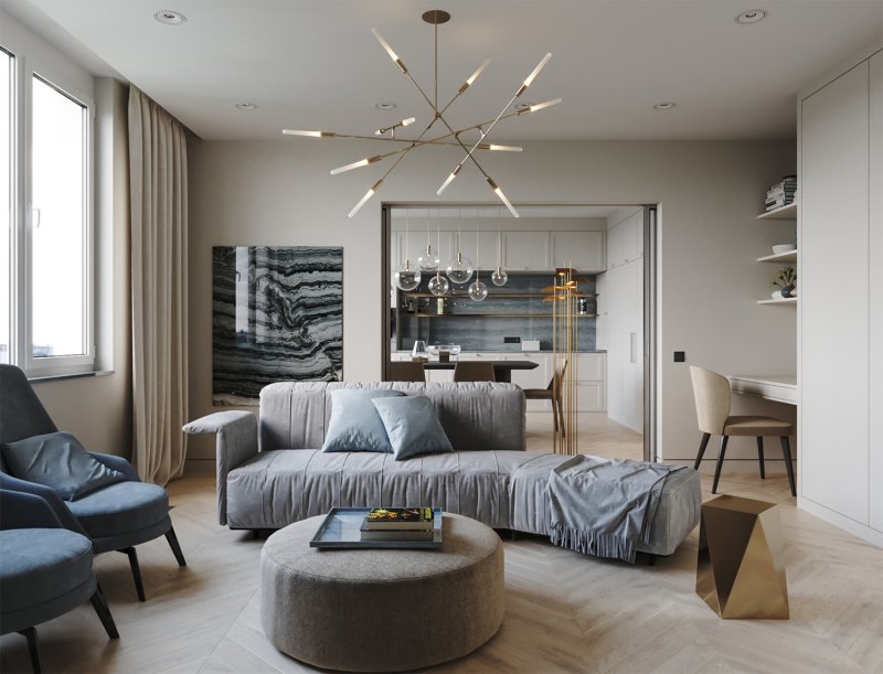 Сдержанный и функциональный стиль контемпорари – оптимальное решение для ценителей комфорта и простоты. Первые попытки воплотить это направление в интерьерах имели место уже в 60-х годах прошлого столетия, но завершилось формирование стиля буквально несколько лет назад. Это позволило насытить его актуальными трендами современного дизайна. Данное направление не является прерогативой исключительно богатых домовладельцев. Его простота и грамотный подход к использованию пространства позволяет создать комфортную атмосферу без особых вложений даже на небольшой площади. Стиль оптимален для оформления дома, квартиры или офиса. У него нет ограничений, которые ставят дизайнера в жесткие рамки. Контемпорари не укладывается в технологичность хай-тека и лаконичность минимализма. При создании интерьеров в приоритете здравый смысл и удобство будущих жильцов. Содержание История возникновения стиля Особенности, характеристика и отличительные черты стиля Кто выбирает стиль контемпорари Для какой площади подходит стиль контемпорари Цветовые решения для стиля Материалы и способы внутренней отделки Стены Пол Потолок Освещение Выбор мебели Использование текстиля Аксессуары и декор Примеры оформления интерьера квартиры Прихожая/коридор Гостиная Кухня Ванная комната и туалет Спальня Детская Заключение История возникновения стиля Сontemporary впервые заявил о себе в середине ХХ века. Он вобрал в себя черты скандинавского стиля, минимализма и конструктивизма. В то время отдельные и коммунальные квартиры имели скромное оформление. Интерьер формировался из мебели и декоративных элементов массового производства. Многие детали приобретались «по случаю», достать что-либо эксклюзивное в те времена было большой удачей. В квартирах наряду со скромными и лаконичными предметами обстановки могли присутствовать предметы старины из различных стилей и даже эпох. В послевоенные годы убранству домов была свойственна некая эклектичность. Поэтому современность интерьера пронизывали детали стилей, имевших давнюю историю. К развитию и распространению стиля в Европе приложили руку архитекторы и конструкторы школы Баухауз. Они пропагандировали идею создания массового производства комфортной и доступной мебели, способной организовать множество предметов и вещей. По их замыслу она должна иметь стильный и красивый вид, и бюджетную стоимость. К концу ХХ века подобной мебелью могло похвастаться практически каждое американское, российское или европейское семейство. В любой квартире был типовой кухонный гарнитур или стенка. Потребители высоко оценили предоставленную возможность обзавестись недорогой и вместе с тем элегантной и функциональной современной мебелью. Многие ее элементы и по сей день активно используются при создании интерьеров. Актуальность стиля контемпорари заключается в его уникальной способности сочетать современные материалы и мебель из сетевых магазинов со старинными предметами. По мнению дизайнеров, в дальнейшем это направление будет только трансформироваться, развиваться и еще долго не утратит своей популярности. Особенности, характеристика и отличительные черты стиля Поскольку стиль основывается на спонтанном включении в интерьер предметов обстановки, при оформлении помещения не нужно соблюдать жесткие прави
