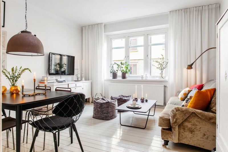 впустите в комнату как можно больше естественного солнечного света. Для этого рекомендуем отказаться от занавесок, а при возможности – расширить оконные проемы.