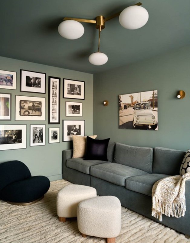 Актуальны темные глубокие оттенки. Это может быть графитовый серый или зеленый, в сочетании с теплыми текстурами дерева или бронзы.