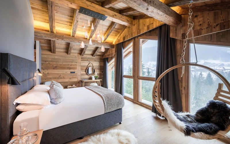 В отделке преобладают природные материалы: дерево, камень, лен и шерсть. Популярны большие комнатные растения, создающие ощущение единения с природой.