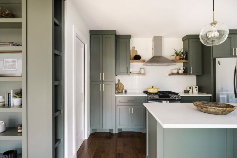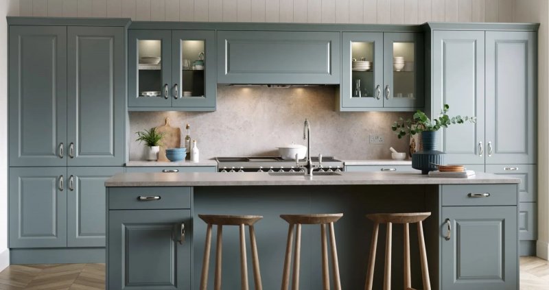 Вместо сплошных фасадов используются стеклянные витрины или открытые полки, которые позволяют демонстрировать красивую посуду или аксессуары.