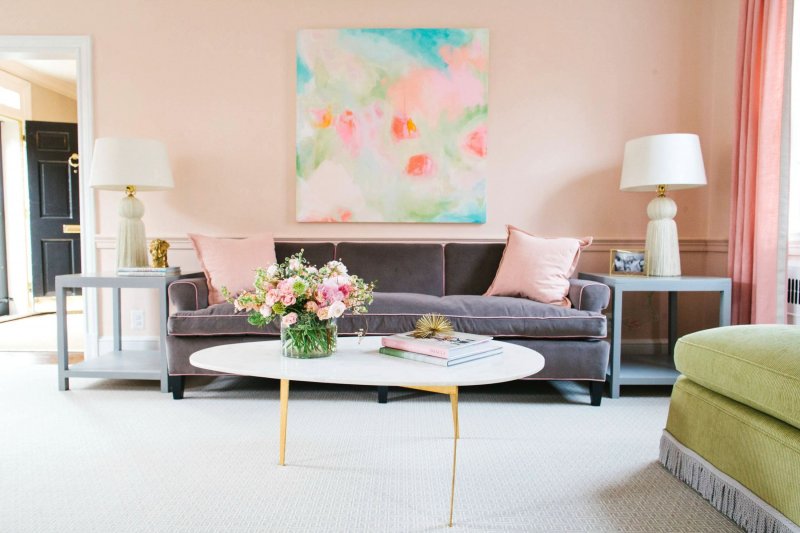 Нежный, пастельный розовый гармонично смотрится в текстиле и акцентах.