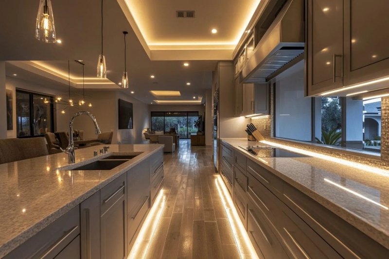 Освещение в 2025 году становится неотъемлемой частью дизайна, способной преобразить любое пространство. Главный акцент делается на универсальности. Использование многоуровневого освещения позволяет создавать разные сценарии для каждого момента дня: яркий – для бодрого утра, теплый и приглушенный – для расслабляющего вечера. Встраиваемые светильники, подсветка шкафов, напольные лампы с мягким сиянием – все это гармонично вписывается в современные интерьеры.