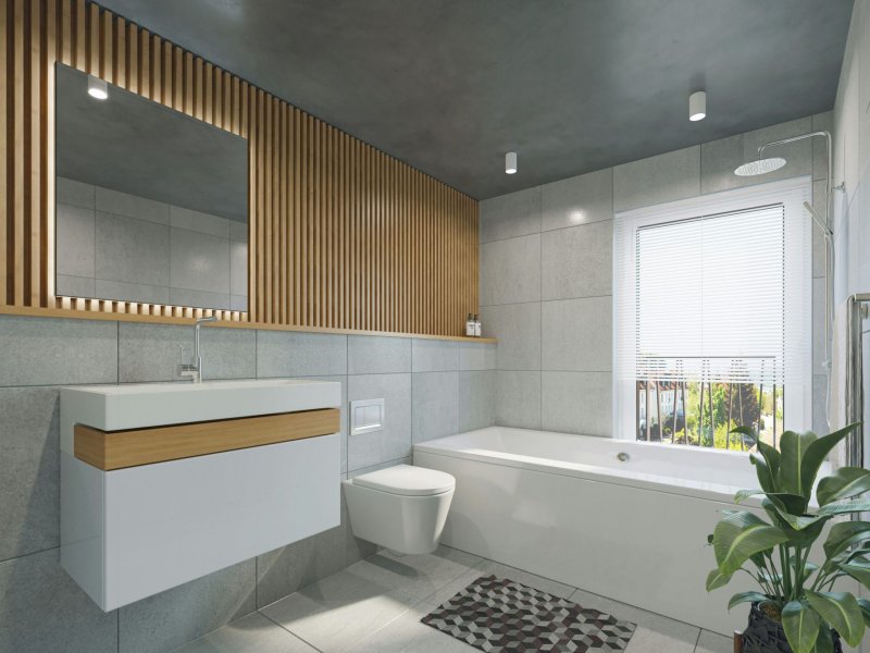 Ванная комната превращается в настоящий домашний СПА-оазис, функциональную зону для релакса и медитации. Камень, дерево, плитка с текстурой бетона доминируют в отделке, создавая ощущение близости к природе и способствуя спокойствию.