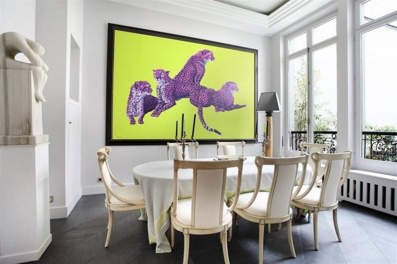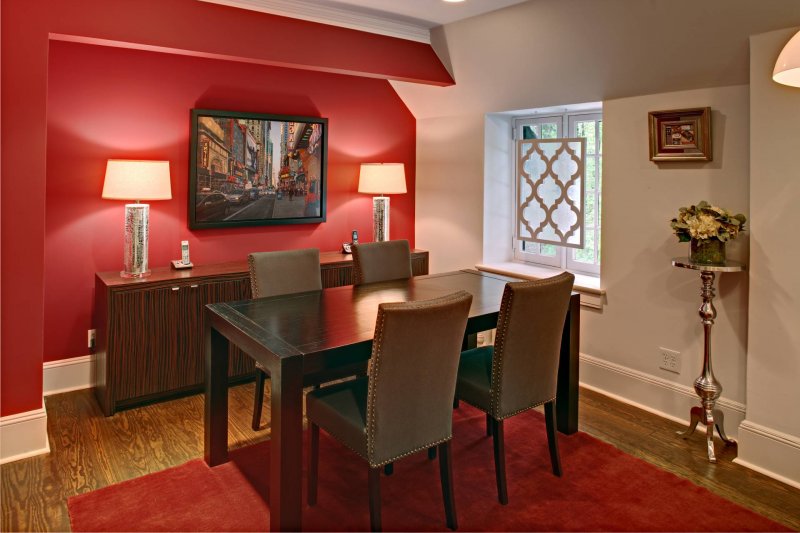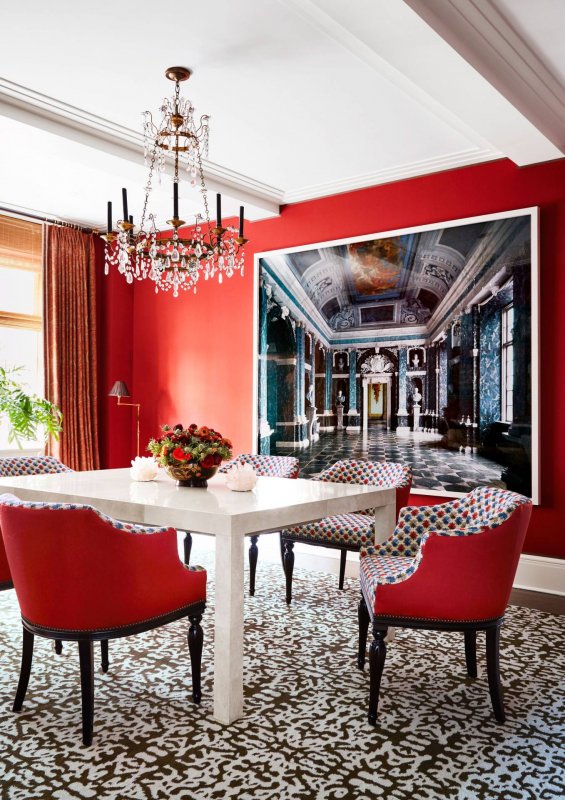 Если вы думаете, в какой цвет покрасить столовую в современном стиле, чтобы она была выразительной, выбирайте цвет маджента. Но, как и в случае с другими яркими и насыщенными тонами, не делайте его главным, а сочетайте, лучше всего с черным, серым или белым.