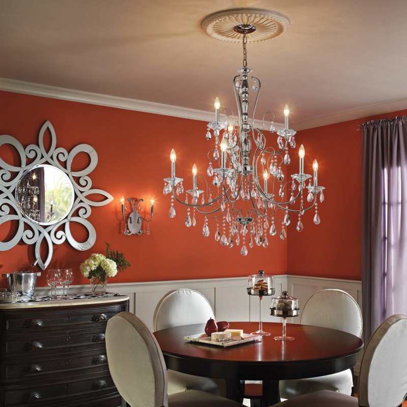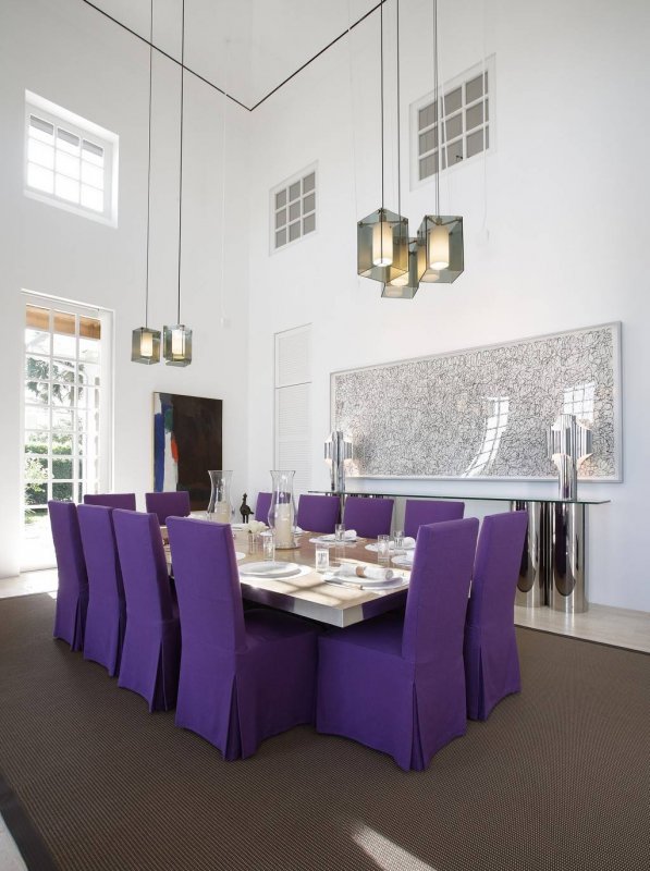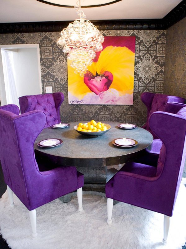 Еще издавна фиолетовый цвет считался царским, так как нередко использовался в интерьере дворцов. Он придаст столовой шик и элегантность. Однако важно с ним не переусердствовать.