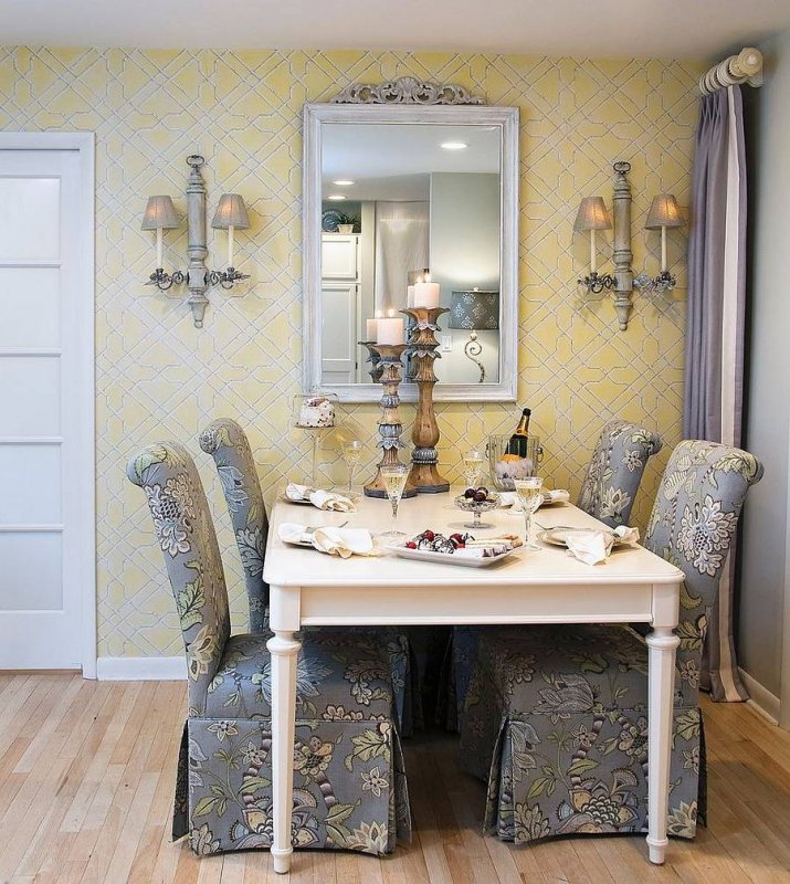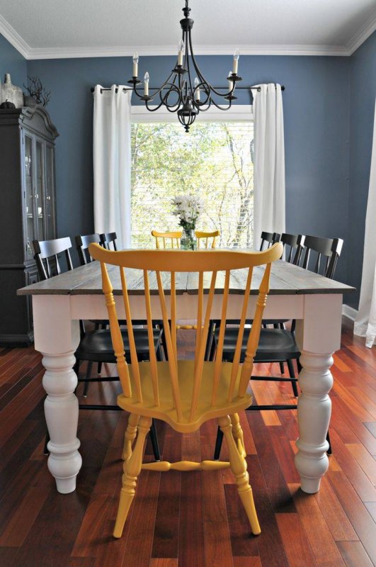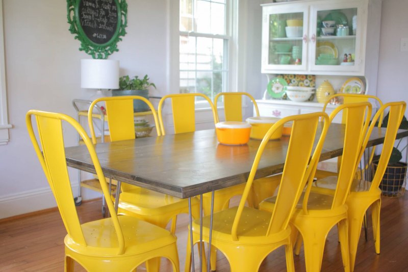 Солнечный желтый цвет сделает столовую яркой и сочной. Он круглый год будет дарить ощущение летнего тепла, ассоциироваться с урожаем и улучшать настроение. Желтый удачно комбинируется с оранжевым, синим, белым, фиолетовым и серым цветом. Чаще всего он не доминирует, а используется в сочетании с другими расцветками.