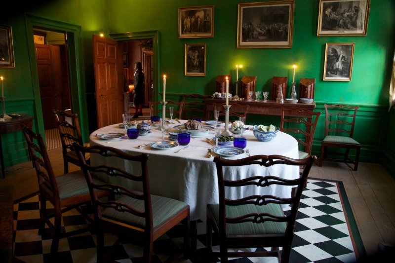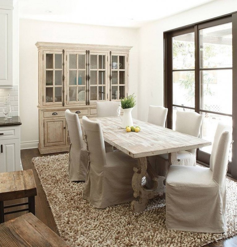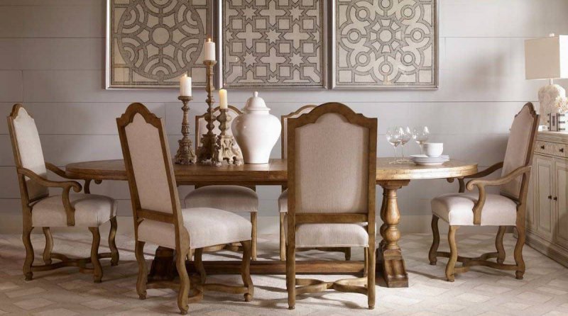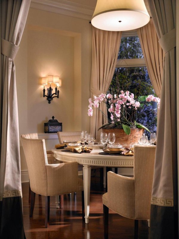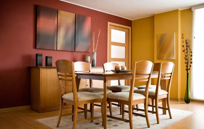 Цвет столовой можно выбрать 1, но используя его разные оттенки. Тогда обстановка не сольется в одно целое и можно будет выделить желаемые акценты.