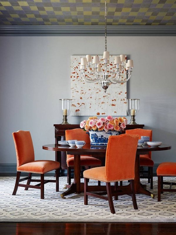 Столовая в оранжевом цвете – популярное и современное решение. Оранжевый, как и желтый, дарит ощущение лета, ассоциируется со спелыми фруктами и пробуждает аппетит.