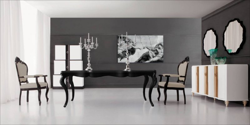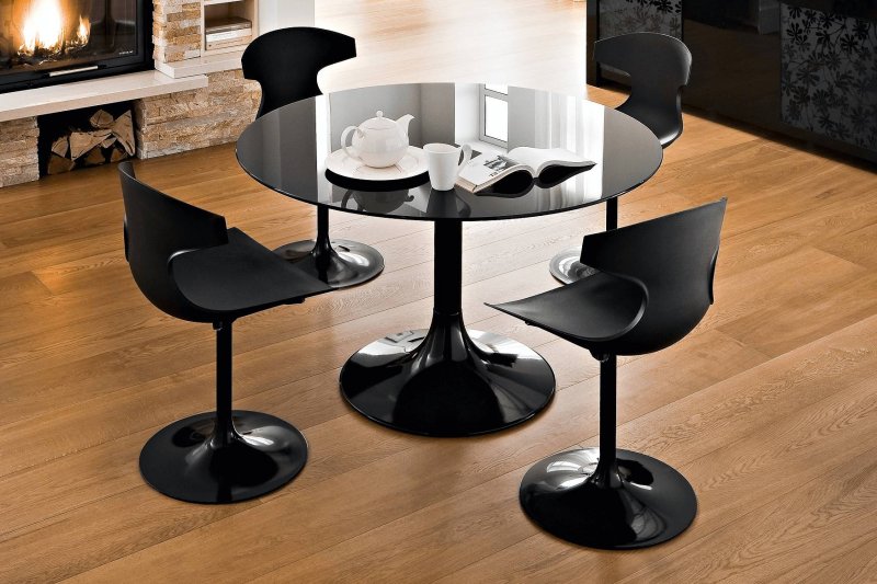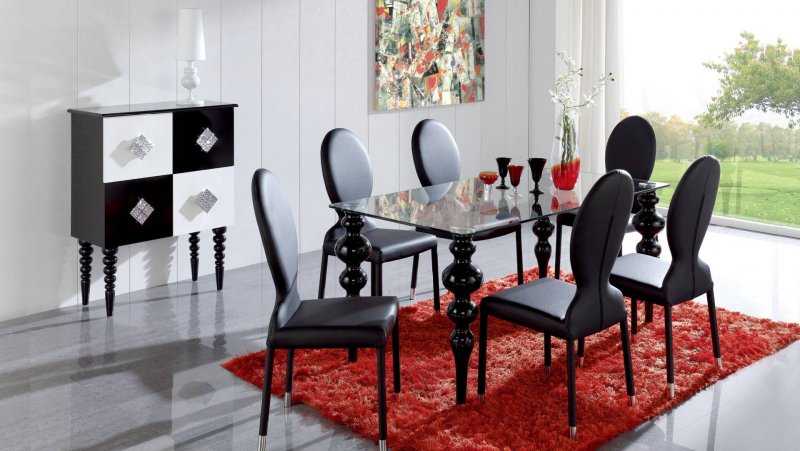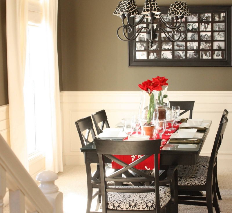 Несмотря на то, что черный также сочетается со всеми расцветками, не делаете его в столовой доминирующим тоном. Некоторых людей он будет психологически перегружать, а в столовой хочется принимать пищу в комфортной обстановке. Допустимы в столовой дуэты черного с красным, белым, розовым, зеленым.