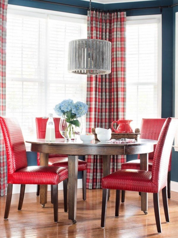 Цвет яркий, динамичный и подходит по темпераменту далеко не всем. Столовая в красном цвете будет выглядеть выразительно и современно, особенно если красный будет выражен на глянцевых поверхностях.