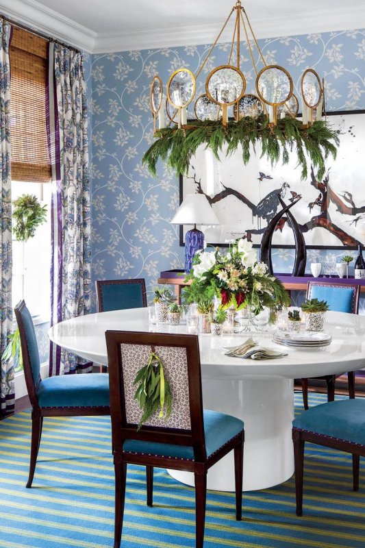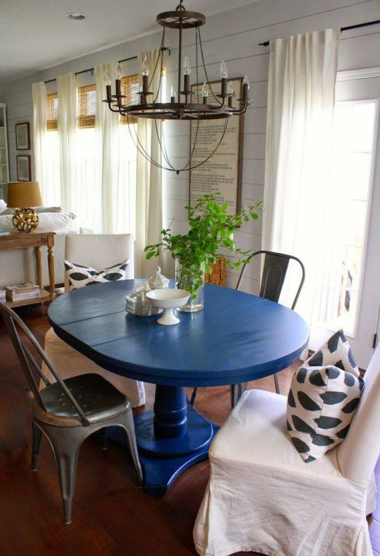 Столовая в голубом цвете у многих ассоциируется с морской свежестью и энергией водной стихии. Средиземноморские нотки ей придадут такие цвета: оливковый, салатовый, бирюзовый, лазурный, синий, белый, а также бежевый.