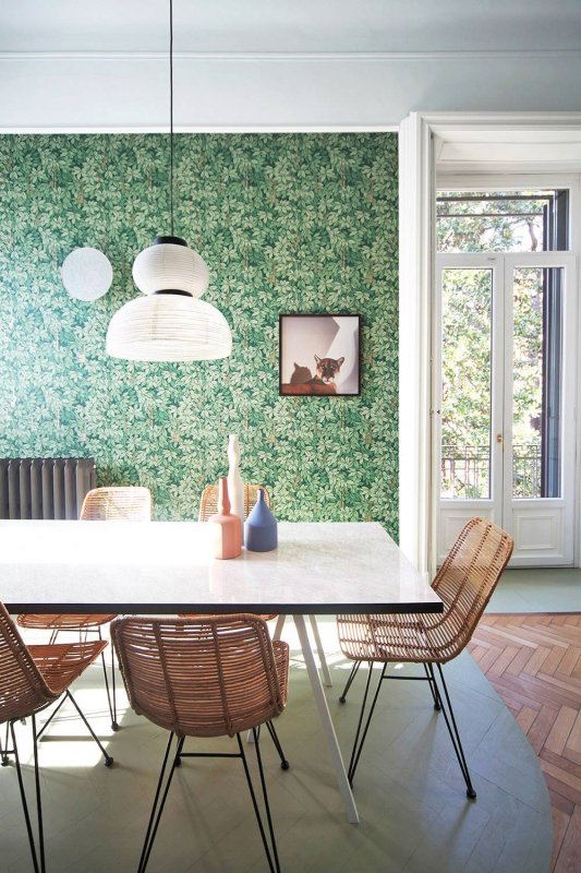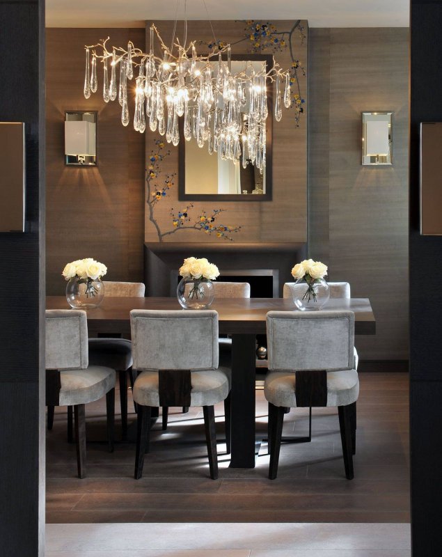 Такая столовая будет выглядеть богато и изысканно. Ассоциации с природой будут способствовать ощущению комфорта.