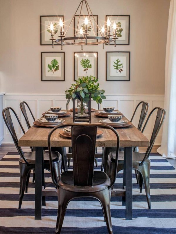 Коричневый и все его оттенки также нередко задействуются в интерьере столовой. Чаще всего он представлен в виде деревянных поверхностей.