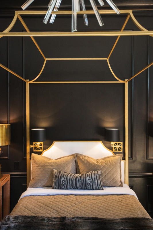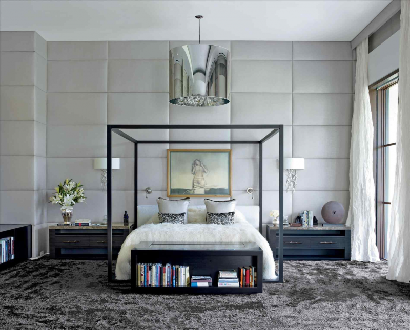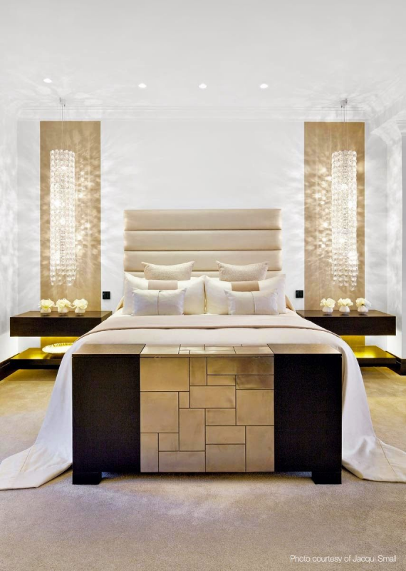 Кровать должна быть достаточно массивной, с высоким изголовьем, выполненным из древесины или мягким, обитым бархатом.