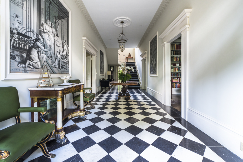 Мрамор или другой гладкий, полированный камень, керамогранит. Такие полы дополняют интерьеры кухни, столовой, холлов или прихожих, реже гостиных.