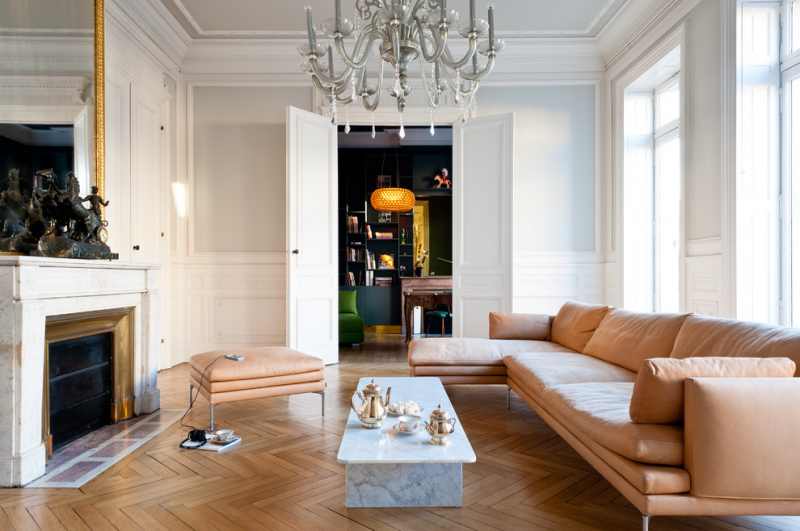 Для неоклассики свойственно использование благородных, дорогих материалов, поэтому для отделки пола оптимально подойдет дерево, которое наполняет помещение уютом, создает комфортную обстановку. Это может быть: