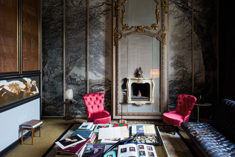 Обстановка выполняется с помощью мебели из натурального дерева, нередко с коваными элементами. Для обивки преимущественно используется бархат или велюр, кожа, замша, шелк, коротковорсовый мех. Рисунок может отсутствовать, отдавая первенство фактуре материала, или же быть достаточно нейтральным (растительный или цветочный орнамент, полоска).