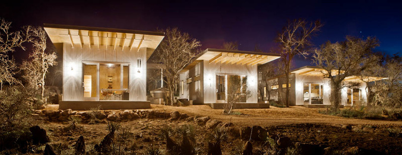 Что может объединить друзей еще больше, чем строительство общего дома? Именно так подумали четыре пары друзей, которые дружат уже несколько десятилетий, и решили создать большой совместный дом для отдыха с четырьмя персональными комнатами на собственном участке земли в Ллано, округ Техас, что в часе езды от Остина. Компания из восьми человек, которая дружила семьями еще со времен колледжа, проводила вместе каждый свой ежегодный отпуск. Они объединили свои ресурсы, чтобы купить особый участок из 10 акров усыпанной гранитом земли, недалеко от реки Ллано, где они могли бы ежегодно собираться и изо дня в день весело проводить время, катаясь на байдарках, каноэ и тьюбах, а также ловить рыбу и плавать. Сначала речь шла о строительстве одного большого дома для всех и проживании на одной общей жилплощади. Но вскоре вопрос о личных потребностях каждого внес коррективы в эти планы. И тогда, с творческой помощью архитектора Мэтта Гарсия, друзья построили отдельные домики-студии площадью 350 квадратных футов, со своими особенностями для каждой семьи, но одинаково отвечающие единой дизайнерской задумке. Так, все домики связывает идея минимальной технологичности, низких эксплуатационных расходов и высокой конструкции. Давайте заглянем в один из таких домиков. Проект в цифрах Кто здесь живет: это загородный домик для супругов (три других семьи проживают в похожих соседних домиках) Расположение: Ллано, Техас Размер домика: 350 квадратных футов Бюджет: $ 40 000 за один домик Крыша-«бабочка» выступает вперед над домом, образовывая 6-футовый отвес с деревянной консолью. Теплое натуральное дерево, из которого выполнен навес, интересно контрастирует с гофрированным металлом, которым обшит сверху дом. Для отделки интерьера были использованы листы фанеры размером 4х8 – такое решение не только очень выгодно сказалось на бюджете, но и задало характер пространству. «Никто не хотел, чтобы в дом были обычные белые гладкие стены», — говорит Гарсия. «Мы хотели сделать современный интерьер с деревенскими элементами». Интересным текстурным элементом интерьера являются древесные волокна, которые, кроме того, вносят в пространство яркий золотистый цвет. Каждый из супругов, проживающих в этом домике, работают на фирме, занимающейся ландшафтным дизайном: он – дизайнер, она – офис-менеджер. Закрытым шкафам они предпочли открытые полочки с корзинами, чтобы все было на виду и упорядочено. Многие из владельцев остальных домиков работают в газетном бизнесе, еще один из них – писатель, поэтому создание комфортного рабочего места в домиках было очень важной задачей. Кроме того, все друзья очень любят читать, поэтому так важно было продумать место для книг в интерьере. Комнаты длиной 30 футов с большими передними окнами выходят к реке Ллано, которая протекает примерно в 100 ярдах от жилища. Внутренние элементы дизайна, такие как необработанные стропила, специально были выполнены в такой простоватой манере. «Мы хотели придать зданию максимальной натуральности, избежать каких-либо искусственных покрытий», — говорит Гарсия. «Мы решили сделать дом простым и настоящим, открытым». Полы в домике покрыты бетоном с полуглянцевым герметиком. Гарсия не хотел чего-то супер-блестящего, но хотел, чтобы в полу отражался свет, а окружающая растительность оставляла на нем свои мягкие 