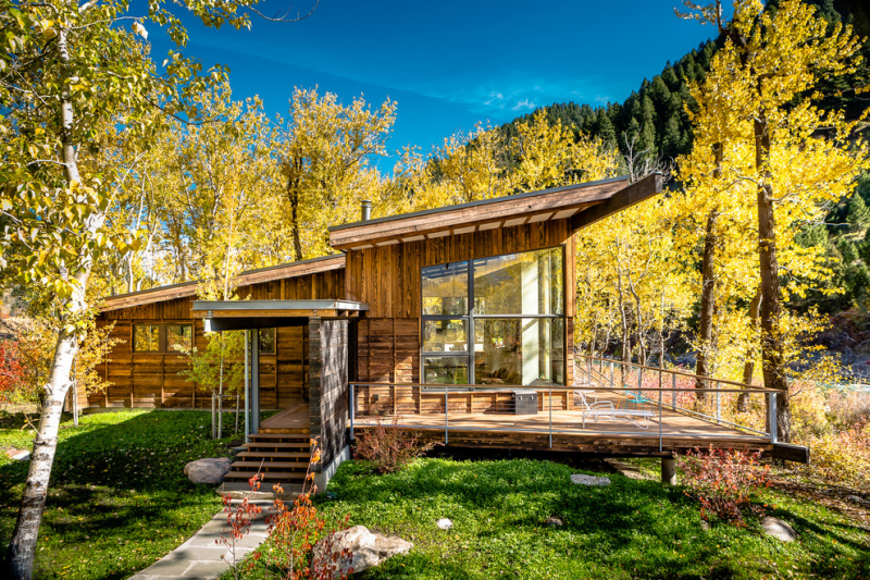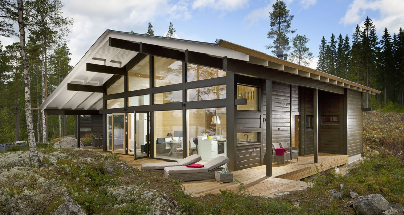 Проект одноэтажного дома из бруса со стеклянным фасадом
