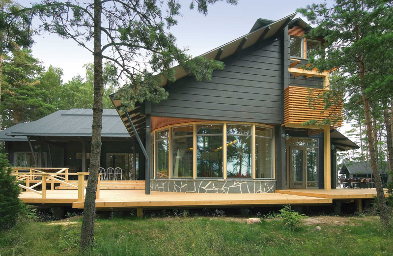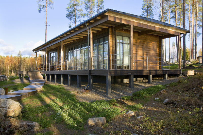 Несущие конструкции дома должны быть устойчивы к гниению, поэтому для них подходят сосна и лиственница, которые в этом плане более надежны. У древесины масса достоинств: прочность, низкая теплопроводность, природная эстетичность, сравнительно небольшой вес, устойчивость к химическим веществам.