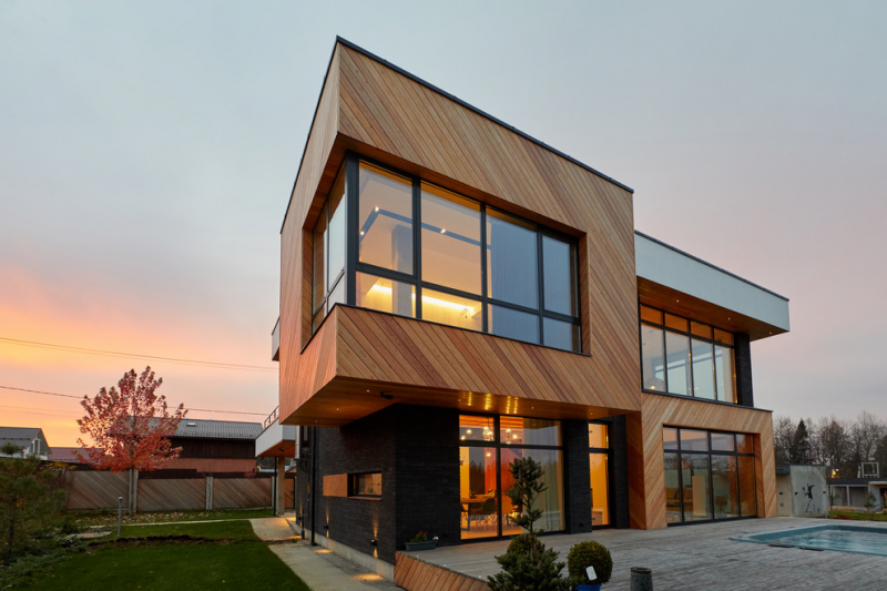 Дом из бруса по индивидуальному проекту в стиле фьюжн