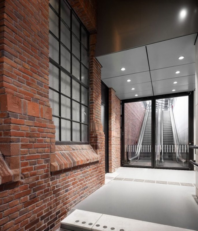 Вход в зону посадки теперь осуществляется через отреставрированное историческое здание Кейперса, где эскалаторы и лестницы скользят вдоль красивой кирпичной стены, подсвеченной так, чтобы подчеркнуть её фактуру.
