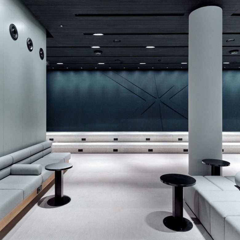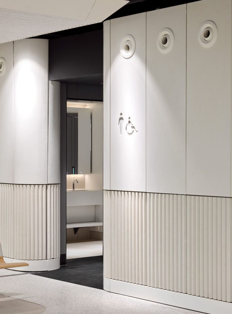 Применялись биоразлагаемая изоляция, терраццо с отрицательным углеродным следом, переработанный фетр и алюминий.