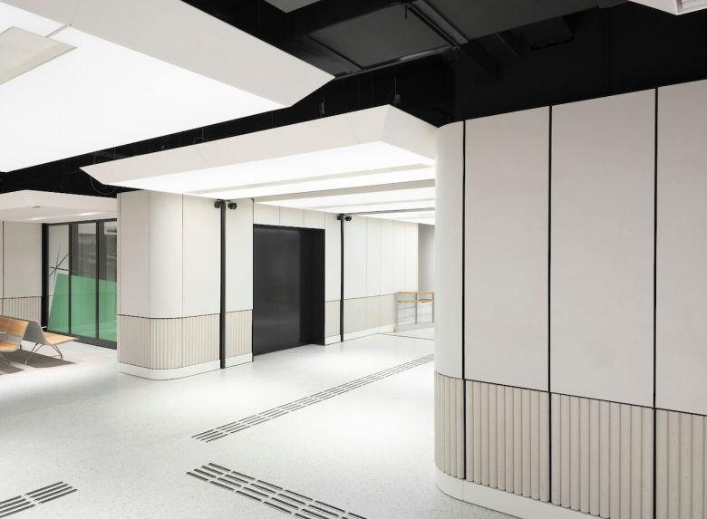 Полы из терраццо с зелёными оттенками мягко направляют пассажиров через пространство.