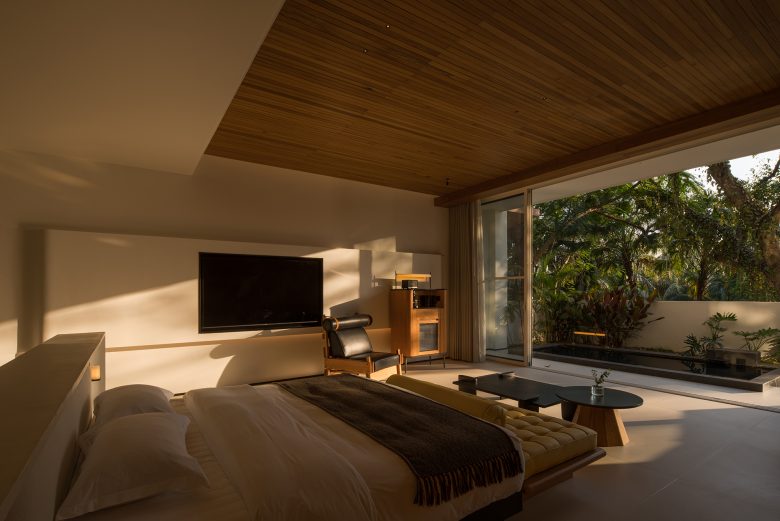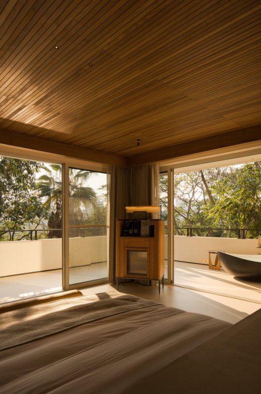 Комнаты на первом этаже имеют приватные сады, а люксы на верхних уровнях — панорамное остекление от пола до потолка, открывающее захватывающие виды на долину.