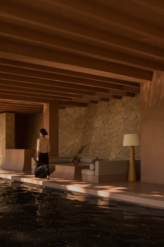 Далеко от городского шума, в живописном регионе Сышуанбаньна на юге Китая, расположился курорт ALAN. Терраса с длинным зеркальным бассейном под навесом и видом на джунгли ALAN RESORT Этот проект дизайн-студии Funs Creative Design Consultant — не просто отель, а уединённое убежище, где архитектура становится естественным продолжением тропического ландшафта, горных вершин и вод реки Ланьцан. Вечерний внутренний двор с подсветкой каменной стены и большой вазой ALAN RESORT Курорт органично вписан в холмистый склон, а его здания, напоминающие своей формой горные гряды, каскадом спускаются к воде. Галерея у бассейна под деревянным потолком с каменной стеной и диванами ALAN RESORT Два отдельных корпуса объединены в единую композицию вокруг центрального элемента — безмятежного плавательного бассейна. Номер-сьют с каменной стеной, диваном и кроватью с желтой банкеткой ALAN RESORT Водные потоки и зеркальные поверхности водоёмов, перетекающие с разных уровней, стирают границу между созданным человеком пространством и дикой природой. Вид из номера на террасу с приватным бассейном и тропическим садом ALAN RESORT Путь гостя начинается с каскадной лестницы, утопающей в зелени. Приватная терраса с мини-бассейном, дорожкой из плит и тропической зеленью ALAN RESORT Войдя на территорию, он оказывается в мире, где пробуждаются все чувства: лёгкий бриз тропического леса, игра света на воде прудов и отражения солнца на ярусных бассейнах. Кровать в сьюте с мягкой желтой банкеткой и каменной стеной ALAN RESORT Открытые коридоры и обеденные зоны максимально используют естественное освещение, усиливая связь с окружающей средой. Спальня с панорамной дверью на террасу, ТВ и креслом у окна ALAN RESORT Номера курорта предлагают разные способы взаимодействия с природой. Просторный сьют с каменной стеной, диваном и открытой ванной зоной ALAN RESORT Комнаты на первом этаже имеют приватные сады, а люксы на верхних уровнях — панорамное остекление от пола до потолка, открывающее захватывающие виды на долину. Зона отдыха в номере с ТВ, кожаным креслом и мини-баром ALAN RESORT Внутреннее убранство подчёркивает единение с ландшафтом: в отделке использованы состаренное дерево, натуральные фактуры и минималистичная эстетика, настраивающая на созерцание и покой. Спальня с ТВ на каменной стене и раздвижными дверями в гостиную ALAN RESORT Подвешенный над обрывами, под сенью древних деревьев и пурпурными закатными небесами, курорт ALAN становится местом для внутреннего умиротворения. Входной павильон курорта и деревянная башня-пагода среди пальм ALAN RESORT Это пространство, созданное для того, чтобы дух отдохнул, а человек обрёл гармонию с собой и окружающим миром. Главный вход ALAN с розовой штукатуркой, деревянной дверью и тропическими растениями ALAN RESORT Лестничный пролет с терракотовыми стенами и квадратным проемом с видом на пальмы ALAN RESORT Коридор с номером A302 и теплой подсветкой в конце ALAN RESORT Спальня с выходом на балкон и уличной ванной на террасе ALAN RESORT Кровать у деревянной реечной стены с мягкой банкеткой в изножье ALAN RESORT Вид из спальни на угловой балкон с деревьями и уличной ванной ALAN RESORT Источник: Project Name: ALAN Resort Project Location: Jinghong, Xishuanbanna, China Project Area: 3500m2 Completion Time: 2024.03 Design Firm: Funs Creative Design Consultant (www.funschengdu.com) Chief Designer: Robin Luo Design Services: Architectural Design, Space Design, Soft Decor Design, Original Prop Design Implementation of Soft Furnishings Installation: CHIC Design Lighting Design: OWAY Lighting Project Photography: Chu