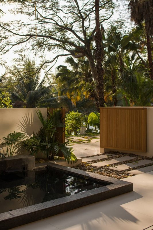 Приватная терраса с мини-бассейном, дорожкой из плит и тропической зеленью ALAN RESORT