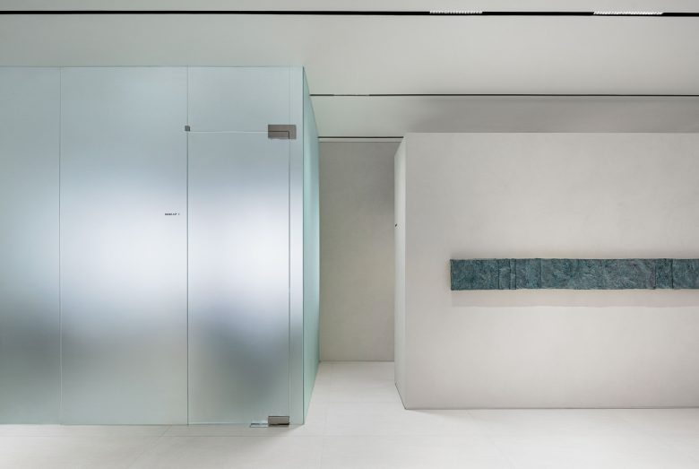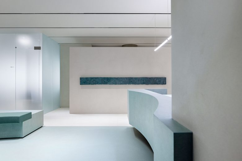Материалы подобраны с учётом тактильных ощущений: от гладких, прохладных поверхностей до мягких и уютных элементов, которые приглашают клиента расслабиться.