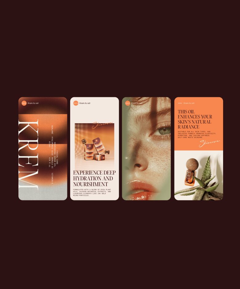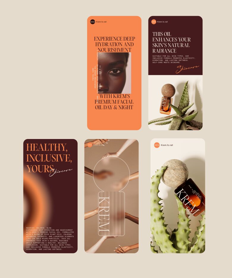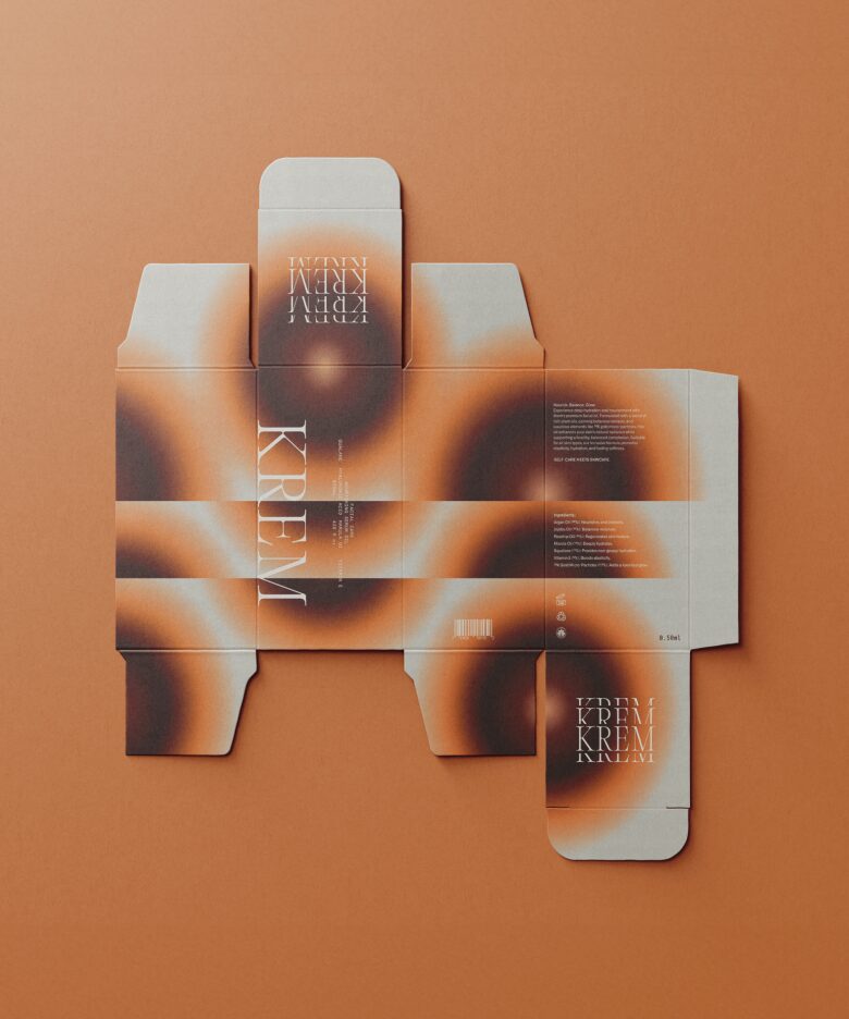 При разработке упаковки Krem использованы натуральные, тактильно приятные материалы, которые создают ощущение качества и заботы о пользователе. Матовая поверхность и мягкие цвета усиливают ощущение естественности и спокойствия, делая продукт частью ежедневного ритуала ухода.
