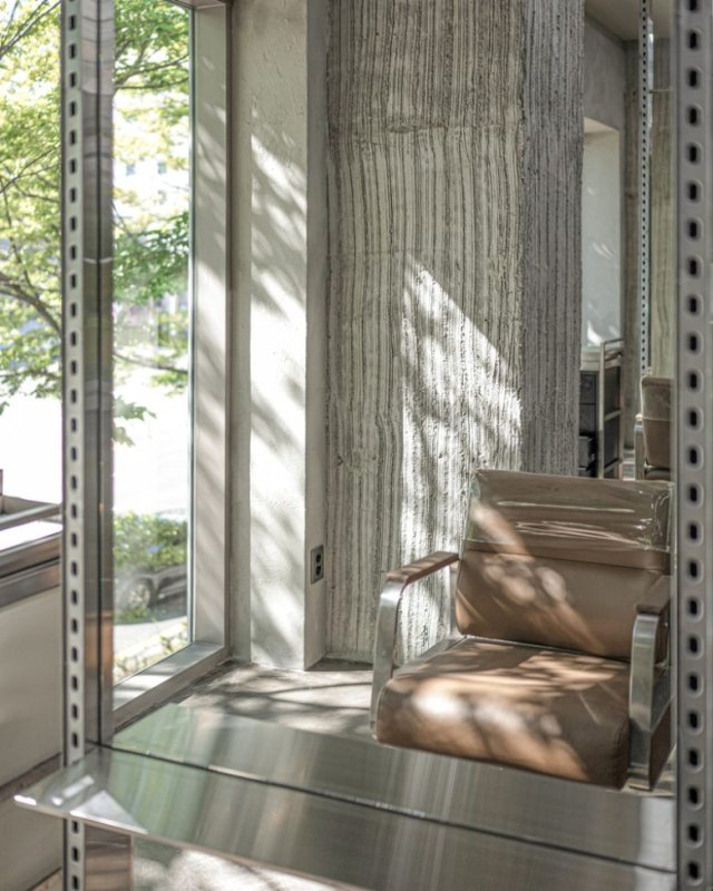 Парикмахерское кресло у окна с бетонной колонной Chaoreum Hair Salon