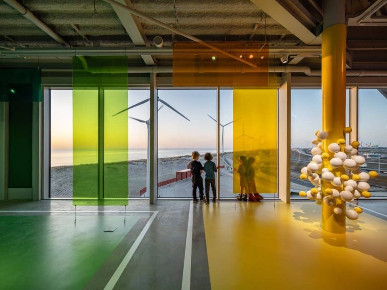 Portlantis — это новый архитектурный и культурный объект, расположенный в порту Роттердама, одном из крупнейших и самых технологичных портов мира. Интерактивная экспозиция центра Portlantis Проект, разработанный студией Kossmann.DeJong, задуман как место, где посетители могут познакомиться с настоящим и будущим портовой инфраструктуры, логистики и устойчивого развития. Закат на смотровой террасе Portlantis Здание становится своеобразным мостом между сложным индустриальным миром порта и широкой аудиторией, делая масштабные процессы понятными и наглядными. Экспозиционное пространство центра Portlantis Архитектурный образ Portlantis построен на идее открытости и диалога с окружающим ландшафтом. Здание расположено таким образом, чтобы максимально раскрывать виды на порт, воду и промышленные объекты. Технологическая экспозиция Portlantis Его форма подчёркивает динамику среды и постоянное движение, характерное для портовой территории. Архитектура не скрывает индустриальный контекст, а, наоборот, усиливает его, превращая в часть общего опыта. Пространство с цветными панелями Portlantis Внутреннее пространство организовано как последовательность экспозиционных и общественных зон, которые рассказывают историю порта через масштабные инсталляции, интерактивные элементы и визуальные материалы. Образовательная зона центра Portlantis Посетители не просто наблюдают за экспозицией, а погружаются в процессы, формирующие современную глобальную экономику, энергетику и логистику. Такой подход делает сложные темы доступными и увлекательными для широкой аудитории. Мастерская зона центра Portlantis Особое внимание в проекте уделено маршрутам движения. Пространство выстроено таким образом, чтобы человек постепенно перемещался между уровнями, открывая для себя новые ракурсы и точки обзора. Террасы и смотровые площадки становятся важной частью опыта, позволяя наблюдать за работой порта в реальном времени и ощущать масштаб происходящего. Интерактивные столы центра Portlantis Материалы и цветовые решения подчёркивают индустриальный характер здания, при этом сохраняя современную и чистую эстетику. Вечерний вид здания Portlantis Использование прочных, выразительных поверхностей создаёт ощущение надёжности и долговечности, а продуманное освещение усиливает архитектурные формы и атмосферу пространства. Смотровая терраса центра Portlantis Интерьер и экстерьер работают как единое целое, поддерживая общую концепцию проекта. Смотровая площадка с видом на порт Portlantis Portlantis задуман не только как выставочный центр, но и как платформа для диалога о будущем портов, устойчивом развитии и взаимодействии человека с крупными инфраструктурными системами. Панорамный вид порта с террасы Portlantis Проект демонстрирует, как архитектура может стать инструментом образования, коммуникации и переосмысления индустриальных территорий, превращая их в открытые и значимые общественные пространства. Здание Portlantis среди дюн Источник: Designer: Kossmanndejong Team: Herman Kossmann (lead), Tsur Reshef, Remco Swart, Roel Bolhuis, Matt Vermeulen, Pauline Fer, Susan van den Berg, Selma Hofstra, Marieke Müller, Réka Szentirmay, Paloma Pardo, Anna Hoving Creative management: Piet-Harm Sterk (BIND), Eileen Niks (Havenbedrijf Rotterdam) Construction: Bruns Light design: HeinzLoopstra Lightdesign Content development: Havenbedrijf Rotterdam, Imke Asmussen (Metimke) Interactives and app: Shosho, IJsfontein, YIPP, VSTEP, Mevea, Siemens, Harborn Films and animations: VideoAgency, MCW, BIND, Orfixmedia, Rens Wegerif AV hardware advisor: SemMika AV-media, installation and programming: AtaTech Sound design: Danny Weijermans Archite